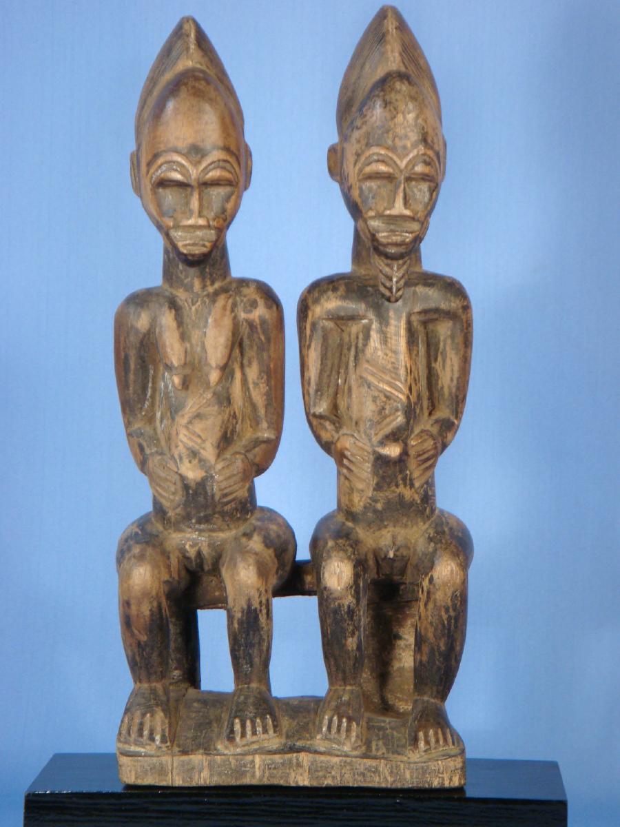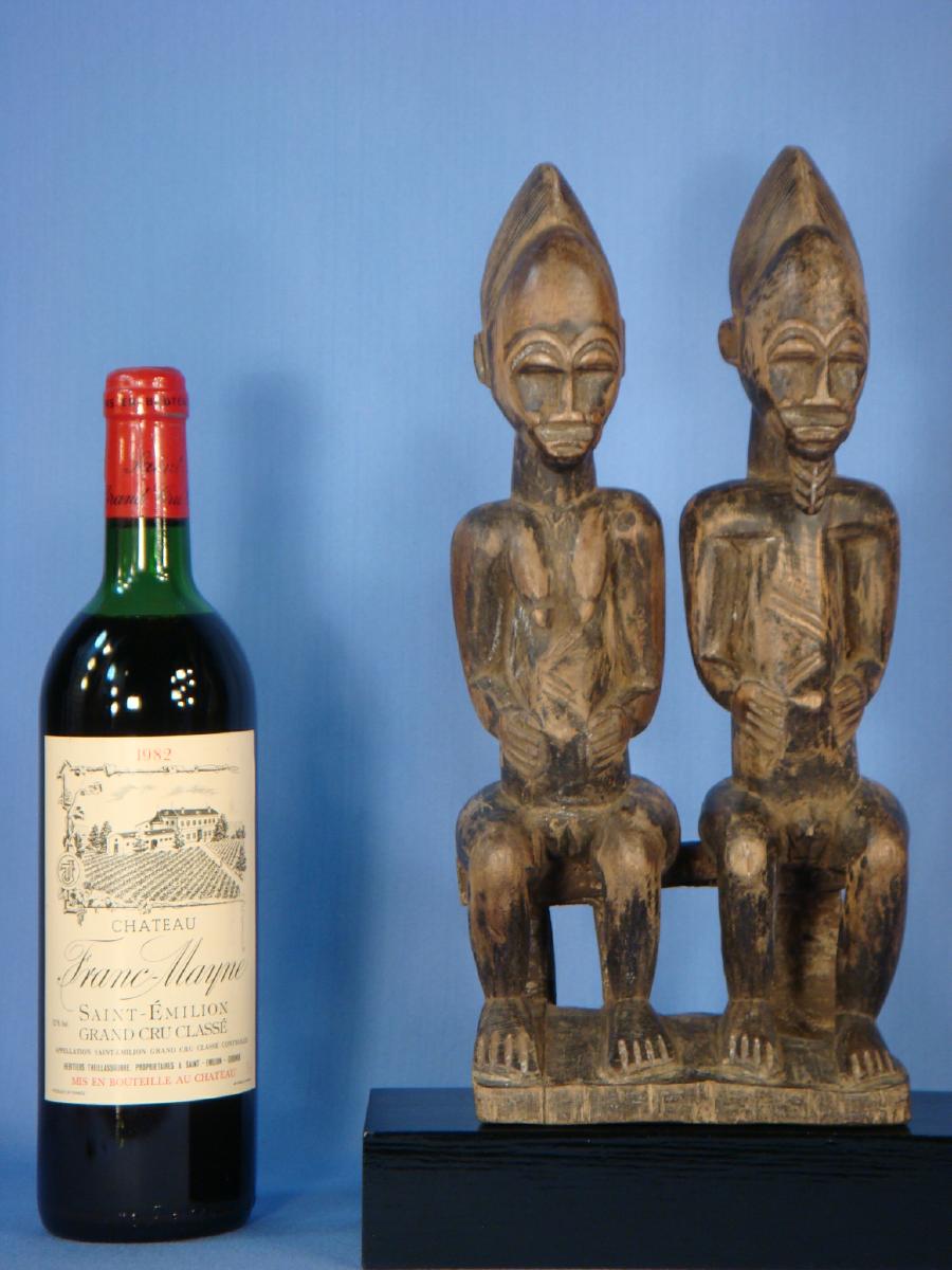 Couple d'ancêtres de l'ethnie Baoulé Titre de l'objet : Couple d'ancêtres de l'ethnie Baoulé Description : Vestiges d'une civilisation magnifique. statue qui représente un couple d'ancêtres du peuple Baoulé - Côte d'Ivoire pré-coloniale - hauteur : 33 cm - hommage aux esprits lors des cérémonies tribales - poids : 700 gr - bois à belle patine - avec un socle - Durant la période pré-électorale, investissez dans des produits culturels issus des collections du Musée d'Art primitifs de Lyon. Produits culturels dont la valeur varie et dépendra de la politique culturelle du futur président de la république.