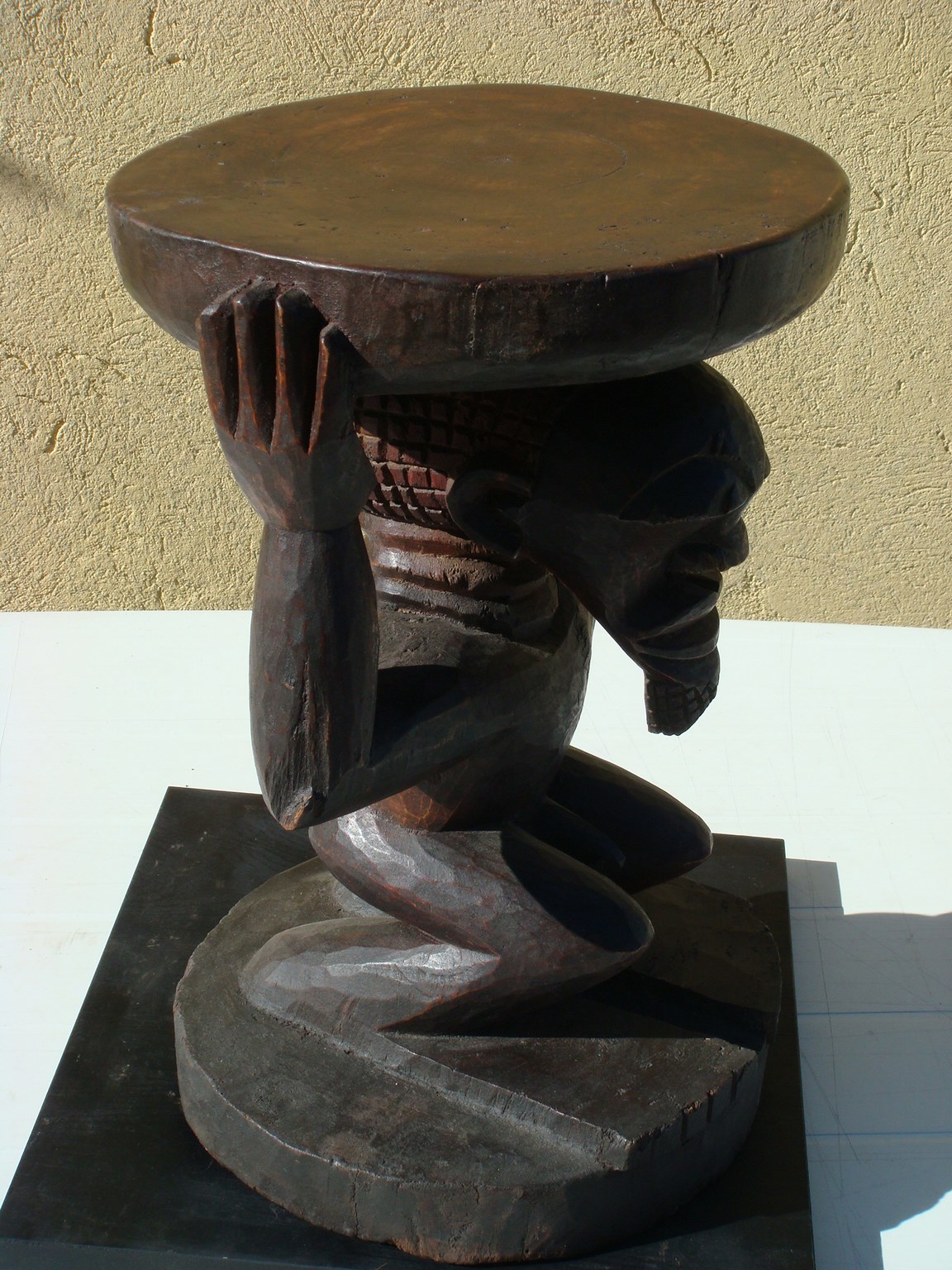 Titre de l'objet : Ancien tabouret traditionnel africain du Congo.