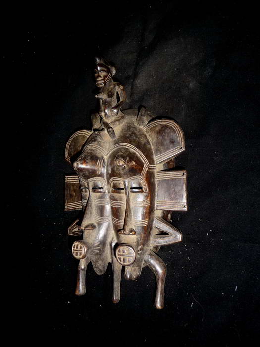 Masque Klepplié de la Côte d'Ivoire Titre de l'objet : Masque Klepplié de la Côte d'Ivoire Description : Métaverse - Double Masque Klepplié - bois dur et sec - hauteur : 31 cm - patine sacrificielle avec des trace de projections d'huiles rituelles - Pour les cérémonies rituelles - Durant la période pré-électorale, investissez dans des produits culturels issus des collections du Musée d'Art primitifs de Cannes. Produits culturels dont la valeur varie et dépendra de la politique culturelle du futur président de la république.