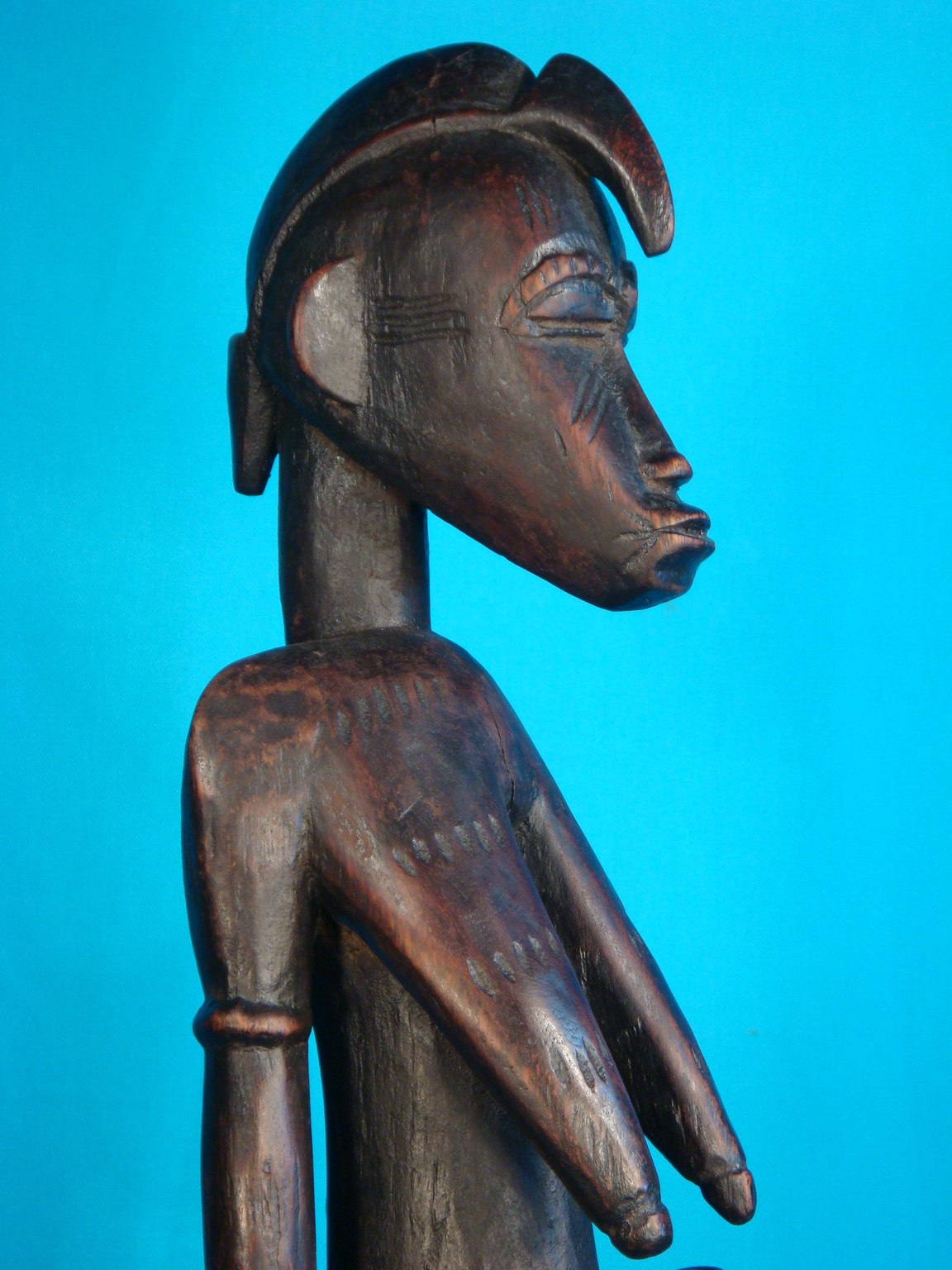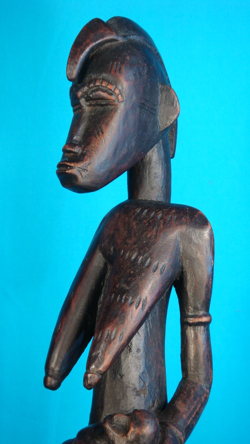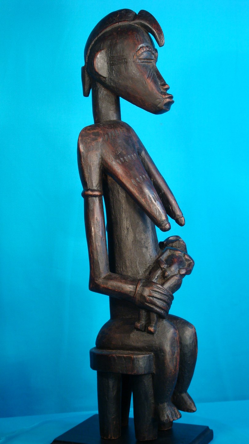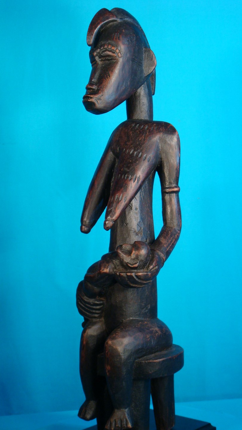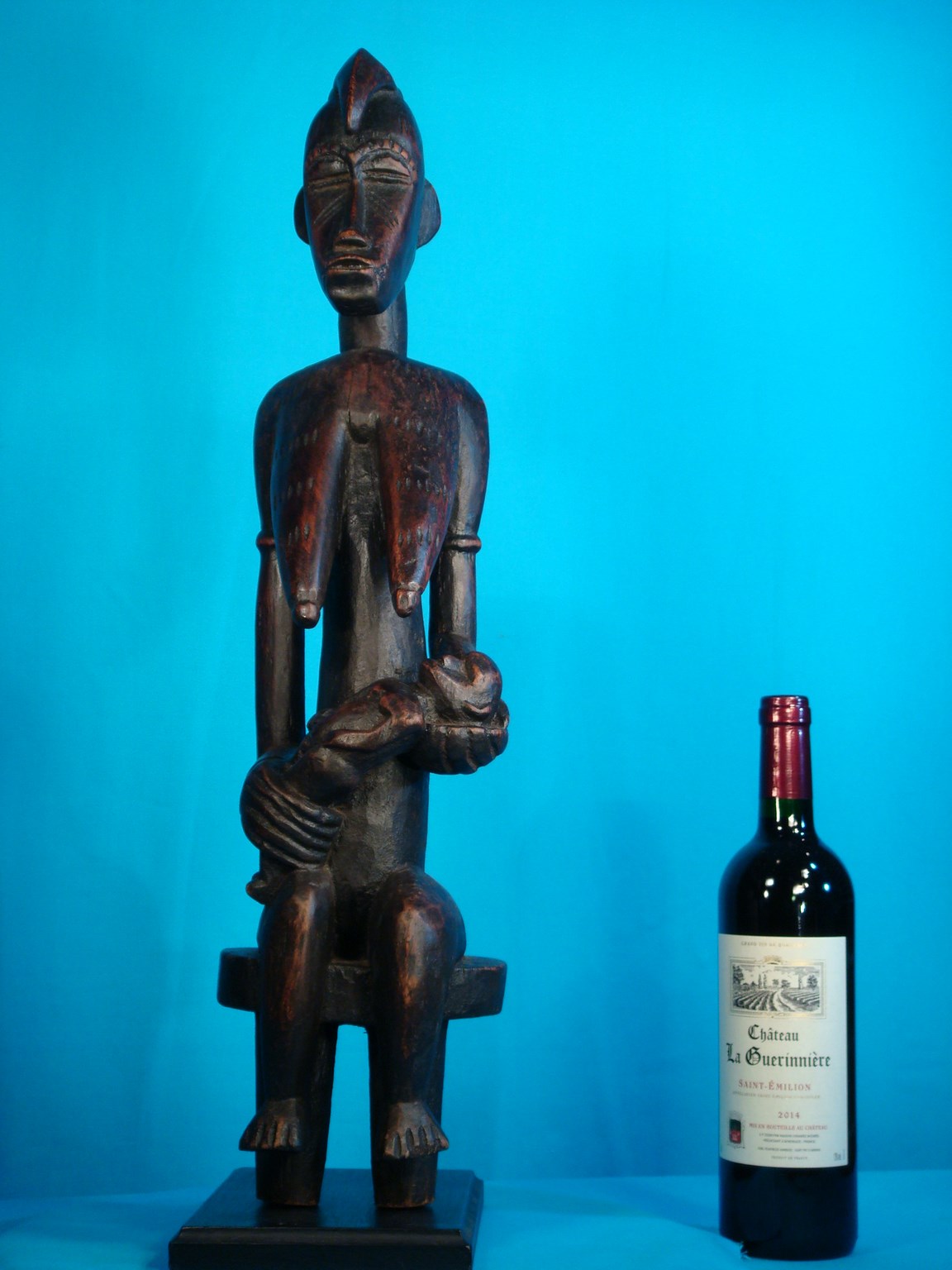 Somptueuse effigie d'ancêtre Sénoufo de RCI Titre de l'objet : Somptueuse effigie d'ancêtre Sénoufo de RCI Description : Statuette maternité de la République de Côte d'ivoire - hauteur : 43,5o cm - ethnie Senoufo - collectée vers les années 1940 - on remarque son enfant au creux des bras - la patine sombre - position debout et bon état malgré quelques légères imperfections Matière : 350 - Réf annonce n° 353 Voir toutes les photos jusqu'en bas de la page